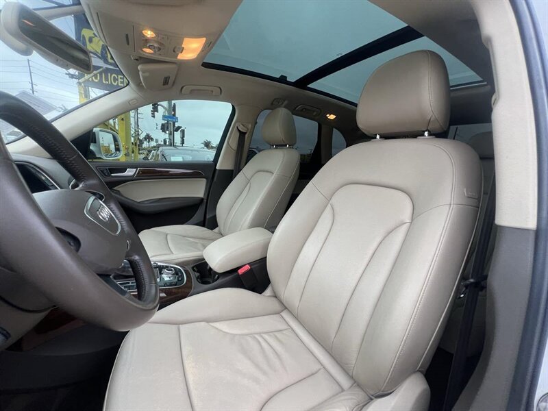 With its remarkable refinement and versatility, our Ibis White 2015 Audi Q5 2.0T Premium Plus quattro is the perfect SUV to suit your needs. Motivated by a TurboCharged 2.0 Liter 4 Cylinder generating 220hp coupled to an 8 Speed Automatic transmission to send you to 60mph in 7.0 seconds. This All Wheel Drive is an incredible road-trip machine thanks to nearly 30mpg on the highway, a smooth, quiet ride, and exceptional capability. You'll love walking up to our Audi with its aerodynamic styling enhanced with a panoramic sunroof, HID headlamps, LED daytime running lights/taillights, and multi-spoke alloy wheels. Thanks to its masterfully-crafted interior filled with luxurious amenities, you'll feel as if our Q5 Premium Plus was designed specifically for your needs. Conveniences like heated power leather front seats with driver-side memory, a multi-function steering wheel, keyless entry/ignition, ambient lighting, three-zone automatic climate control, and a power liftgate add to your comfort. At the same time, you focus on the road ahead. Our Audi also keeps you seamlessly connected and entertained with a full-color infotainment system featuring Bluetooth, available SiriusXM satellite radio, iPod integration, an SD card reader, and high-fidelity audio. Audi focuses significant resources to help keep you and your passengers safe, as demonstrated by technologies such as rain-sensing wipers, ABS, advanced airbags, and stability/traction control. Our Q5 2.0T Premium Plus is the luxury SUV you've been looking for! Save this Page and Call for Availability. We Know You Will Enjoy Your Test Drive Towards Ownership!