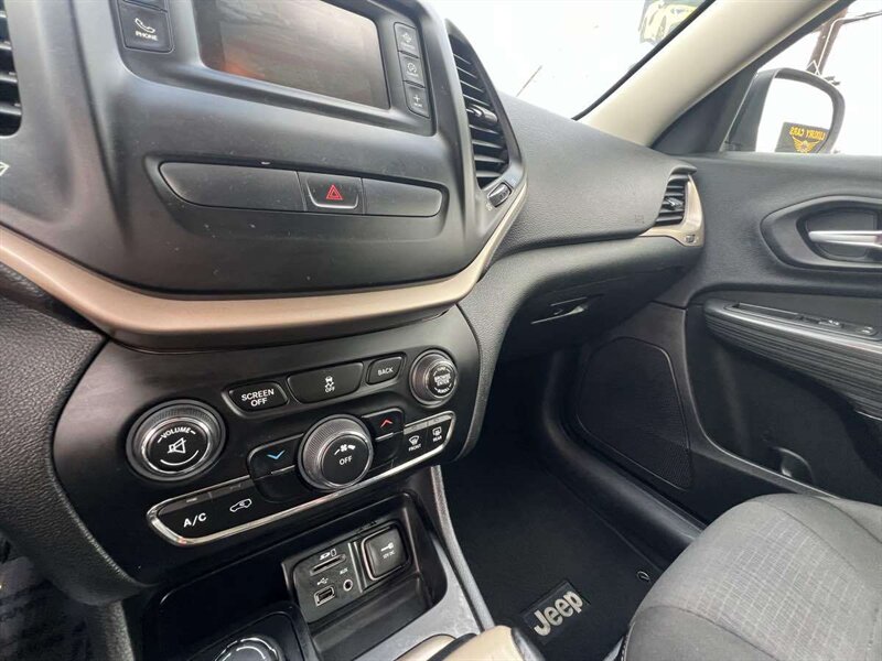 Off-road capability is yours with our 2015 Jeep Cherokee Latitude 4WD presented in Granite Crystal Metallic Clearcoat. Powered by a 2.4 Liter 4 Cylinder that offers 184hp connected to an innovative 9 Speed Automatic transmission for easy passing. Enjoy this Four Wheel Drive SUV as it offers nearly 31mpg on the highway to help you leave others in your tracks with superior performance and auto, snow, sport, and sand/mud modes to optimize traction. Add in alloy wheels, roof rails, fog lights, body-color door handles, and mirrors, as well as privacy-tinted glass to accent the impressive physique of our Cherokee Latitude. Inside our Latitude, you'll see that the cabin's layout is driver-friendly. A leather steering wheel with audio controls, a fold-flat front passenger seat, and a convenient 60/40 split-folding and reclining rear seat come in handy. Enjoy Bluetooth phone and audio connectivity and a six-speaker sound system with a 5-inch touchscreen interface, USB/iPod integration, auxiliary audio input, and an SD card reader. Whether out pounding snowdrifts into submission or coasting down the freeway, our Jeep Latitude has all the creature comforts you'll need to keep that smile on your face. You'll be supremely confident knowing that safety features from Jeep such as ABS, stability/traction control, and multiple airbags are in place to keep you safe and secure. This Cherokee Latitude offers capability, comfort, and style that is sure to please you! Save this Page and Call for Availability. We Know You Will Enjoy Your Test Drive Towards Ownership!