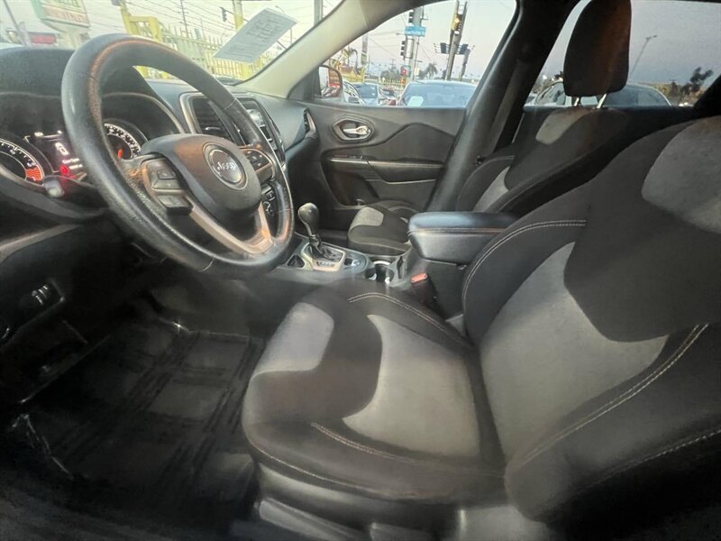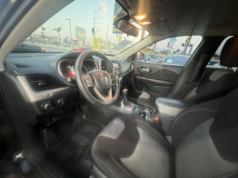 Our 2015 Jeep Cherokee Sport in Brilliant Black Crystal Pearlcoat gives off-road capability. Powered by a 2.4 Liter TigerShark 4 Cylinder that provides 184hp paired with a 9 Speed Automatic transmission for passing ease. This Front Wheel Drive SUV achieves near 31mpg on the highway. You'll leave others in your tracks with superior performance and auto, snow, sport, and sand/mud modes to optimize traction. Admire the exterior of the Cherokee that combines classic Jeep elements with a modern and aerodynamic shape accented by 17-inch wheels. Inside our Sport, you'll see that the cabin's layout is driver-friendly. Keyless remote entry, power accessories, and convenient 60/40 split-folding and reclining rear seat come in handy. You'll also enjoy staying connected with Bluetooth audio, a six-speaker audio system with a touchscreen interface, USB/iPod integration, auxiliary audio input, and an SD card reader. Whether out pounding snowdrifts into submission or coasting down the freeway, our Jeep Sport has all the creature comforts you'll need to keep that smile on your face. Jeep offers safety features such as ABS, stability/traction control, and multiple airbags are in place to keep you safe and secure. This winning combination of capability, comfort, and style is sure to please you with this Cherokee Sport! Save this Page and Call for Availability. We Know You Will Enjoy Your Test Drive Towards Ownership!