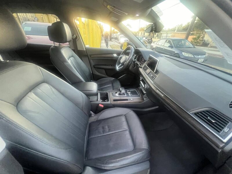 Our sensational 2018 Audi Q5 Tech Premium quattro displayed in Brilliant Black helps you make the most of every drive. Motivated by a TurboCharged 2.0 Liter 4 Cylinder producing 252hp tethered to a 7 Speed Automatic transmission to send you to 60mph in 5.9 seconds and on to 130mph. Our All Wheel Drive SUV offers up to 26mpg on the highway and a remarkable driving experience highlighted by a comfortable ride and responsive handling. You will also love our Q5's eye-catching styling accented by HID headlamps, LED daytime running lights, and split-spoke alloy wheels. Our Tech Premium cabin seats up to five passengers, high-quality materials, and various amenities for your convenience. Heated leather front seats, a multi-function steering wheel, keyless ignition, ambient lighting, a power liftgate, and tri-zone automatic climate control are some of the niceties available at your fingertips. The full-color MMI infotainment system also features Bluetooth, Android Auto, Apple CarPlay, an SD card reader, a USB input, and concert-quality audio for your entertainment needs. Our Audi features safety technologies such as collision preparedness, a backup camera, rain-sensing wipers, ABS, advanced airbags, tire-pressure monitoring, and stability/traction control to help keep you safe and secure. Our Q5 Tech Premium is the crossover for you! Save this Page and Call for Availability. We Know You Will Enjoy Your Test Drive Towards Ownership!