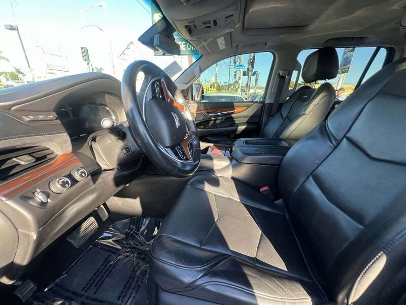 Daring and dramatic in Black Raven, our 2018 Cadillac Escalade Luxury AWD represents exceptional performance and powerful prestige! Powered by a 6.2 Liter V8 that generates 420hp connected to a 10 Speed Automatic transmission that is responsive and quick with impressive acceleration. This All Wheel Drive SUV shows off nearly 21mpg on the highway. You'll also appreciate Selectable Magnetic Ride Control suspension that results in a smooth, composed ride and keeps a smile on your face each time you slide behind the wheel. Our Escalade Luxury serves up style that can't be ignored and dazzles with its prominent alloy wheels, LED headlamps, a sunroof, and hands-free power lift-gate. The Luxury cabin keeps you perpetually indulged with its sumptuous leather, heated/cooled front seats, heated second-row seats, heated steering wheel, and a head-up display. Next-level connectivity is close at hand with the Cadillac CUE information and media control system that features Apple CarPlay®/Android Auto®, Bose surround sound, navigation, available WiFi, Bluetooth®, and more! With just one drive, this Cadillac has been carefully crafted for those requiring automotive excellence. It also represents safety and security with its quality construction, forward collision alert, lane keep assist, stability/traction control with trailer sway control, parking assist, a surround-view camera, rear-seat reminder, and customizable Teen Driver settings. Reward yourself with our Escalade Luxury, which inspires confidence with practicality and style that is second to none! Save this Page and Call for Availability. We Know You Will Enjoy Your Test Drive Towards Ownership!