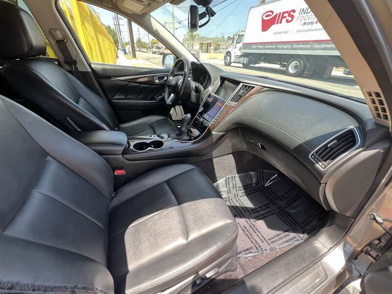 Embrace each exhilarating moment in our 2018 INFINITI Q50 3.0T Luxe Sedan that looks bold and accomplished in Graphite Shadow! Powered by a Twin TurboCharged 3.0 Liter V6 that offers 300hp connected to a 7 Speed Automatic transmission for impressive passing maneuvers. You'll go further with this Rear Wheel Drive sedan's brilliant design while scoring nearly 31mpg on the highway showing off a striking contemporary style with its sleek lines, a massive sunroof, and alloy wheels. The Luxe cabin will exceed your expectations with keyless entry, pushbutton start, advanced dual-zone automatic climate control, power accessories, eight-way power-adjustable front seats, and an auto-dimming rearview mirror. All of your favorite music is close at hand thanks to Bose audio system with high-definition AM/FM radio, CD with MP3 playback capability, radio data system, 2 USB ports, and available satellite radio. Customize your digital information with our INFINITI InTouch dual display screens and INFINITI InTuition, and use your voice to control it all! Fun to drive and highly competent, our INFINITI has also been carefully crafted with safety features, including a rear monitor, ABS, advanced airbags, zone body construction, and vehicle dynamic control. We know you'll enjoy every second of this Q50 3.0t Luxe sedan, so get behind the wheel and reward yourself today. Save this Page and Call for Availability. We Know You Will Enjoy Your Test Drive Towards Ownership!
