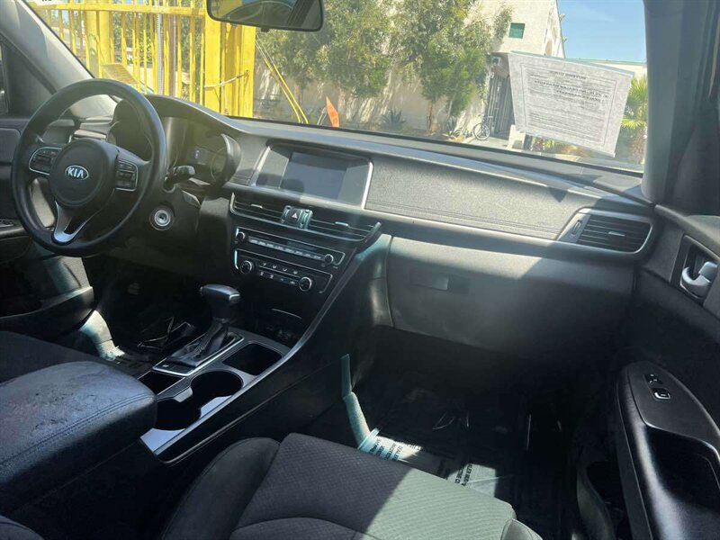 Sleek in design and advanced in technology, our 2018 Kia Optima LX Sedan showing in Ebony Black is awaiting your arrival. Powered by a 2.4 Liter 4 Cylinder offering 185hp tethered to a 6 Speed Automatic transmission. Earning nearly 37mpg on the Highway, this Front Wheel Drive sedan is a true performer. Our impressive Optima is immediately recognized by its distinctive and exclusive gloss black Tiger nose grille. Power mirrors with LED turn-signal indicators, 16-inch Light Gray Finish alloy wheels, and solar control glass all complement the sleek exterior. Open the door to our LX 1.6T and prepared to be amazed by the amenities that await. As you settle into the cozy cloth seating with CleanTex, enjoy convenient features such as a 10-way power-adjustable driver's seat, Bluetooth, UVO with a vibrant 7-inch touchscreen display, a fabulous 6-speaker sound system with Android Auto and Apple CarPlay, keyless entry, and a rear camera display. Safety is a priority for our Kia engineer team. Blind-spot detection, Lane Change Assist, and Rear Cross-Traffic Alert enhance the well-being of your vehicle and those on the road with you! The Optima is a prime choice for your driving needs Save this Page and Call for Availability. We Know You Will Enjoy Your Test Drive Towards Ownership!
