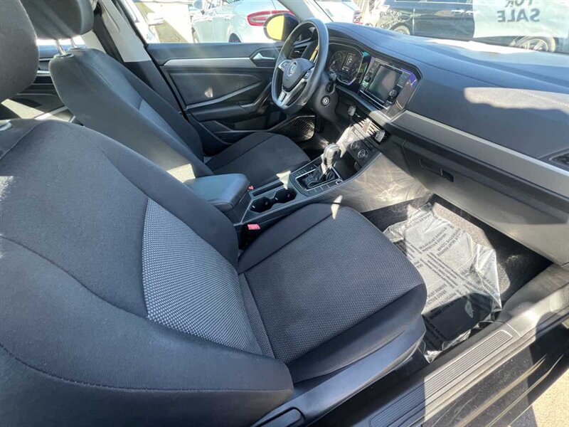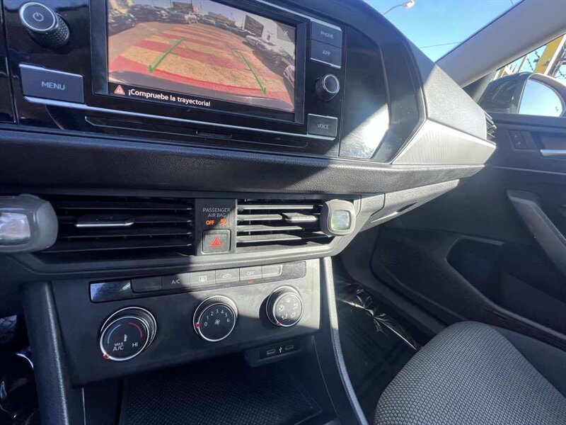 Our 2021 Volkswagen Jetta SE Sedan serves up fun times and clean lines in Black! Powered by a TurboCharged 1.4 Liter TSI 4 Cylinder offering 147hp tethered to an 8 Speed Automatic transmission. This Front Wheel Drive sedan also features responsive handling and returns nearly 39mpg on the highway. Additionally, our Jetta's sophisticated look can bring a smile to your face with its LED lighting, panoramic sunroof, heated power mirrors, chrome grille, and two-tone alloy wheels. Thoughtfully designed for comfort and convenience, our SE cabin supplies V-Tex leatherette heated front seats, six-way power for the driver, a multifunction steering wheel, dual-zone automatic climate control, keyless access, and pushbutton ignition. Of course, there are premium technologies onboard, including a 6.5-inch touchscreen that helps you connect with Android Auto®, Apple CarPlay®, and Bluetooth®, plus enjoy your favorite talk or tunes with a four-speaker sound system. Volkswagen prioritizes your safety with intelligent technologies such as a backup camera, automatic braking, forward collision warning, pedestrian detection, a blind-spot monitor, rear cross-traffic alert, ABS, tire-pressure monitoring, advanced airbags, and more. Our Jetta SE can transform your driving for the better with its German engineering! Save this Page and Call for Availability. We Know You Will Enjoy Your Test Drive Towards Ownership!